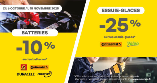 Promo entretien auto : Batteries et Essuie-glaces Du 6 octobre au 15 novembre 2025, profitez de la promotion Entretien auto hiver […]